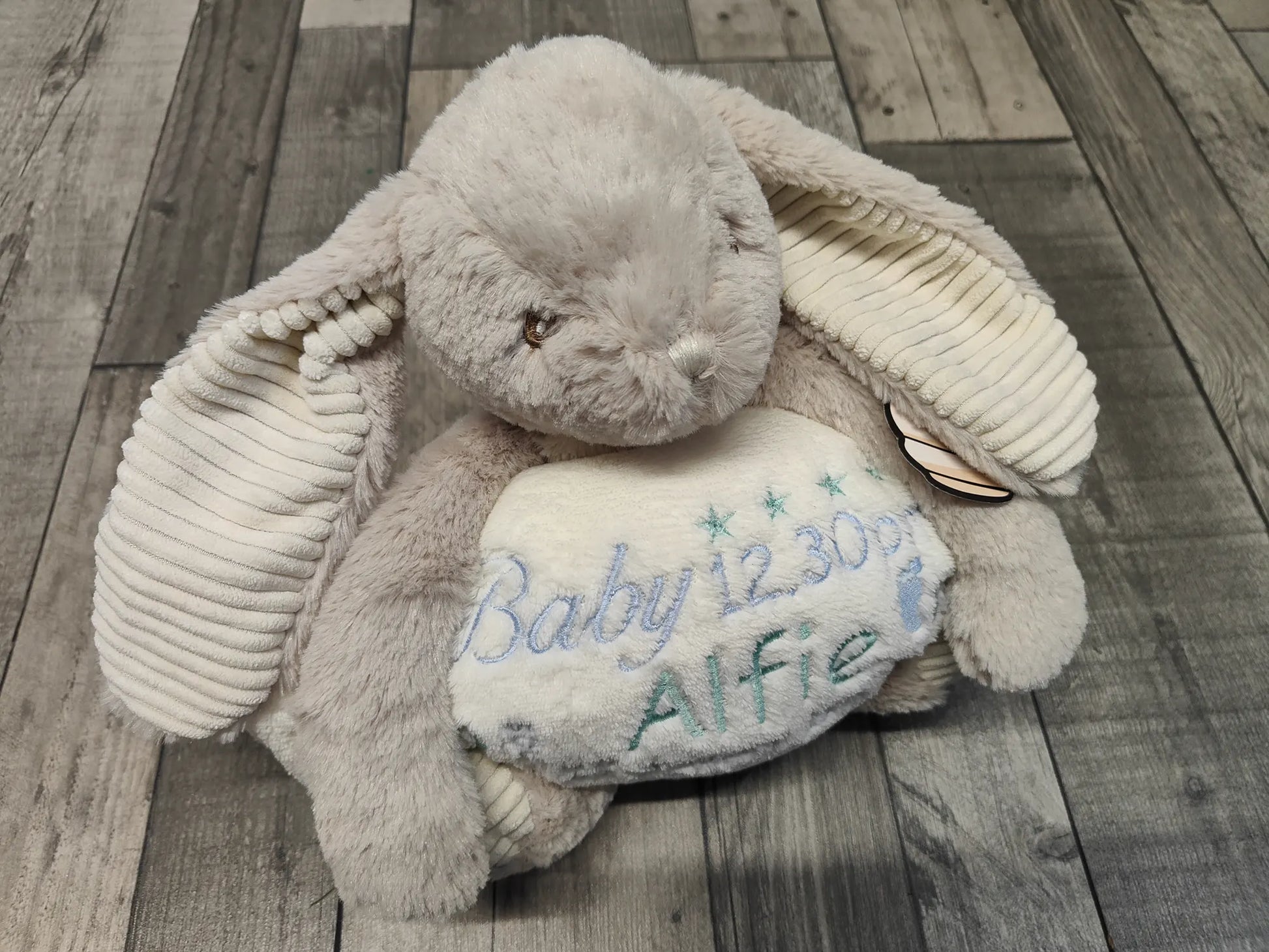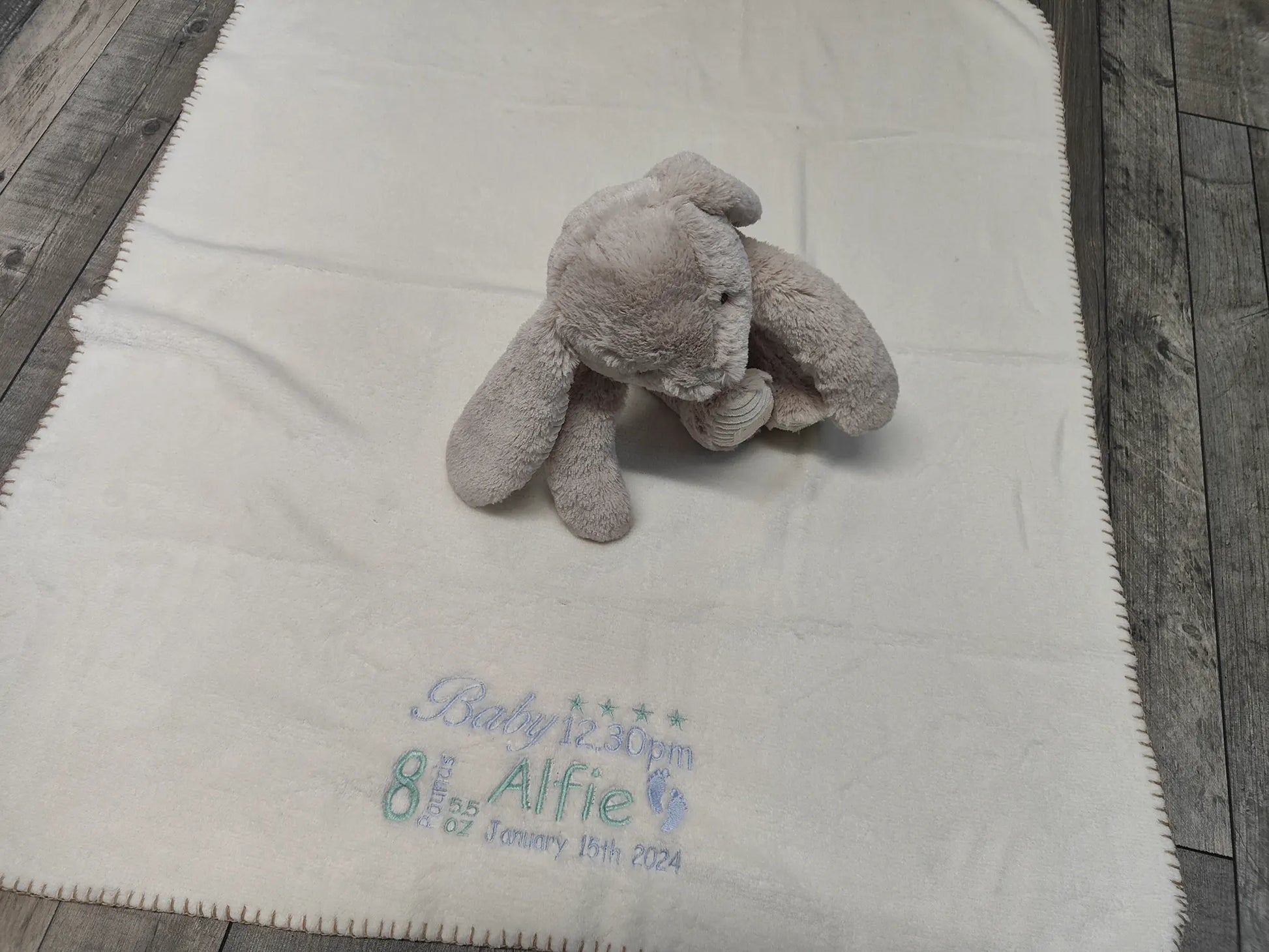 Personalised Embroidered Rabbit Holding a Blanket