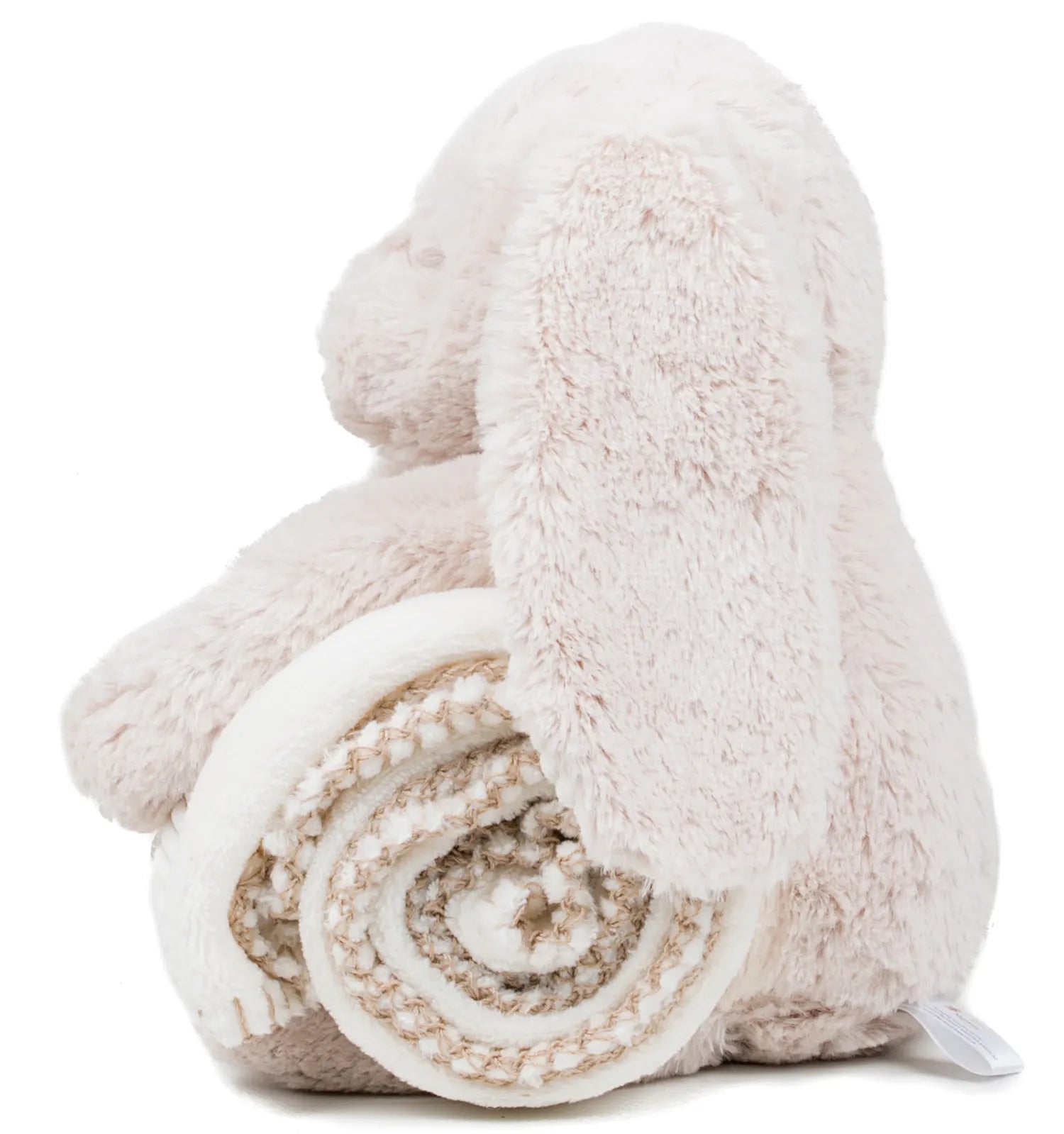 This personalised rabbit and blanket set is perfect for any child. Made of 100% polyester plush, it features a 40cm adorable rabbit that can hop along with its hook and loop fastened paws and feet. The blanket is embroidered, making it a special and unique gift for any occasion. Keep your little one cozy and entertained with this charming set.